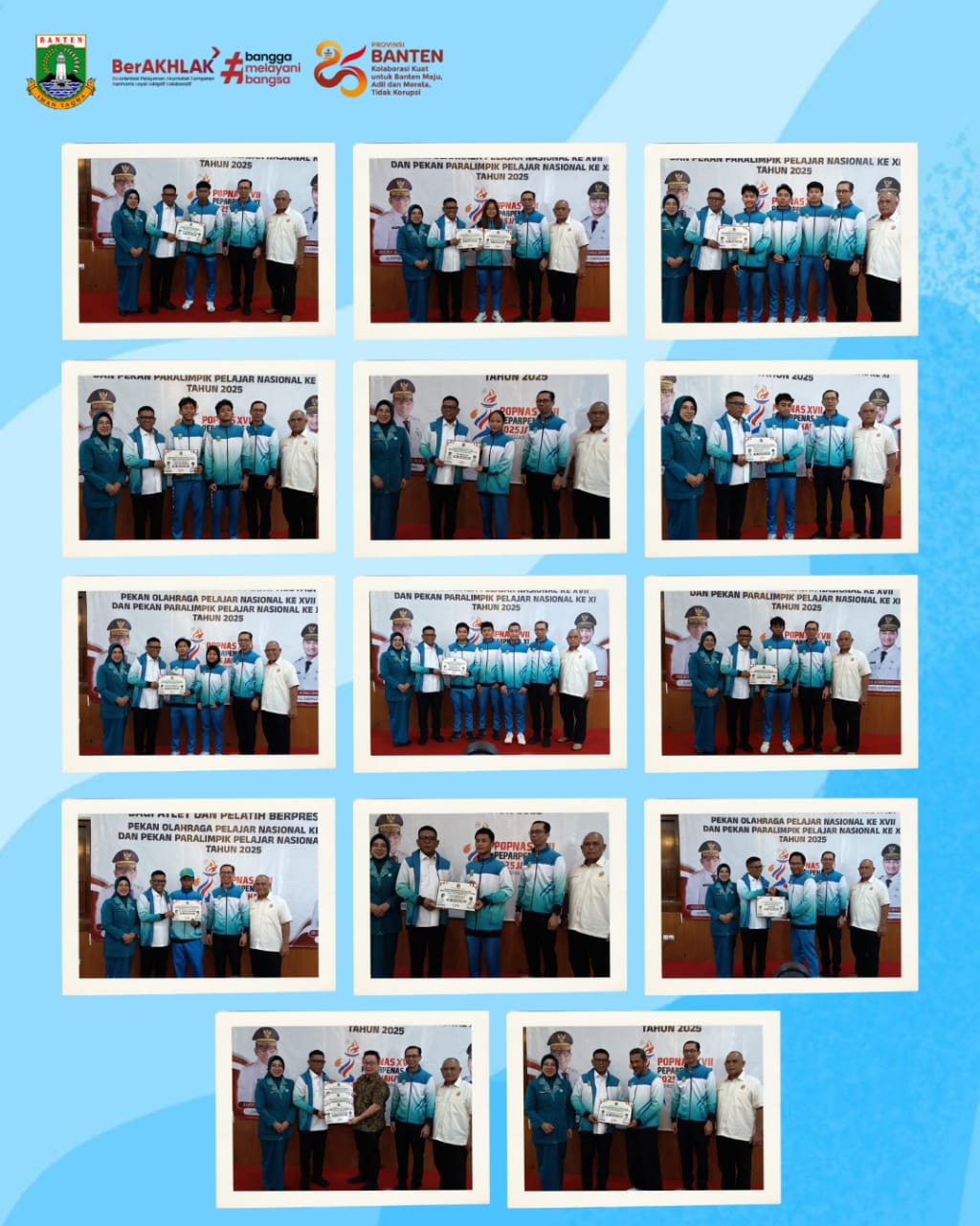 GUBERNUR BANTEN, MEMBERIKAN PENGHARGAAN BAGI PARA ATLET PELAJAR DAN PELATIH PERAIH MEDALI POPNAS XVII DAN PEPAPERNAS XI TAHUN 2025