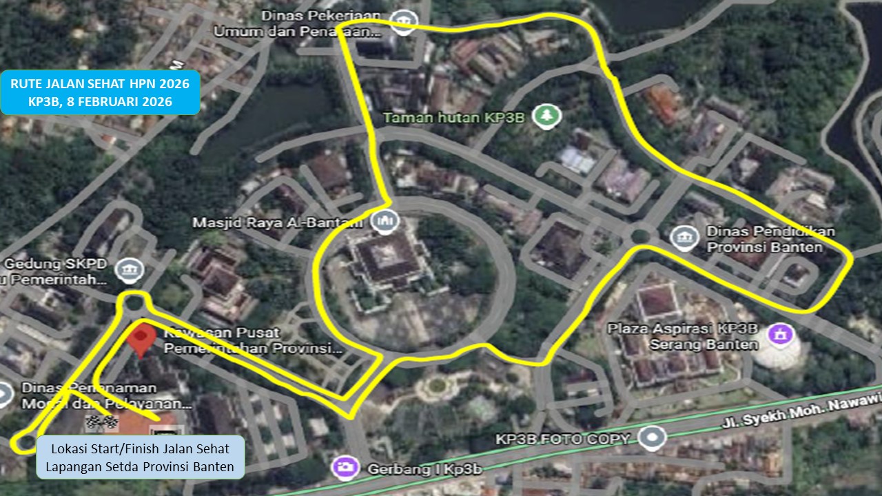 Sumber Gambar :AYO IKUTI & HADIRI! Dalam rangka Hari Pers Nasional 2026, Dinas Kepemudaan dan Olahraga Provinsi Banten mengajak seluruh masyarakat Banten untuk berpartisipasi dalam kegiatan: JALAN SEHAT Minggu, 08 Februari 2026 Pukul 06.00 WIB sd selesai Lapangan Upacara Kantor Gubernur Banten (KP3B), Palima – Serang dengan tema : “Pers Sehat, Ekonomi Berdaulat, Bangsa Kuat” Menangkan doorprize menarik dan rasakan kebersamaan dalam semangat hidup sehat! Mari kita sukseskan kegiatan ini bersama Gubernur Banten & Wakil Gubernur Banten dalam momentum Hari Pers Nasional 2026 Informasi pendaftaran & pengambilan kupon: Dedi (Dispora Prov. Banten) Badrudin (PWI Prov. Banten) Jangan lupa ajak keluarga & sahabatmu ya! Sehat bareng, bahagia bareng, Banten Maju