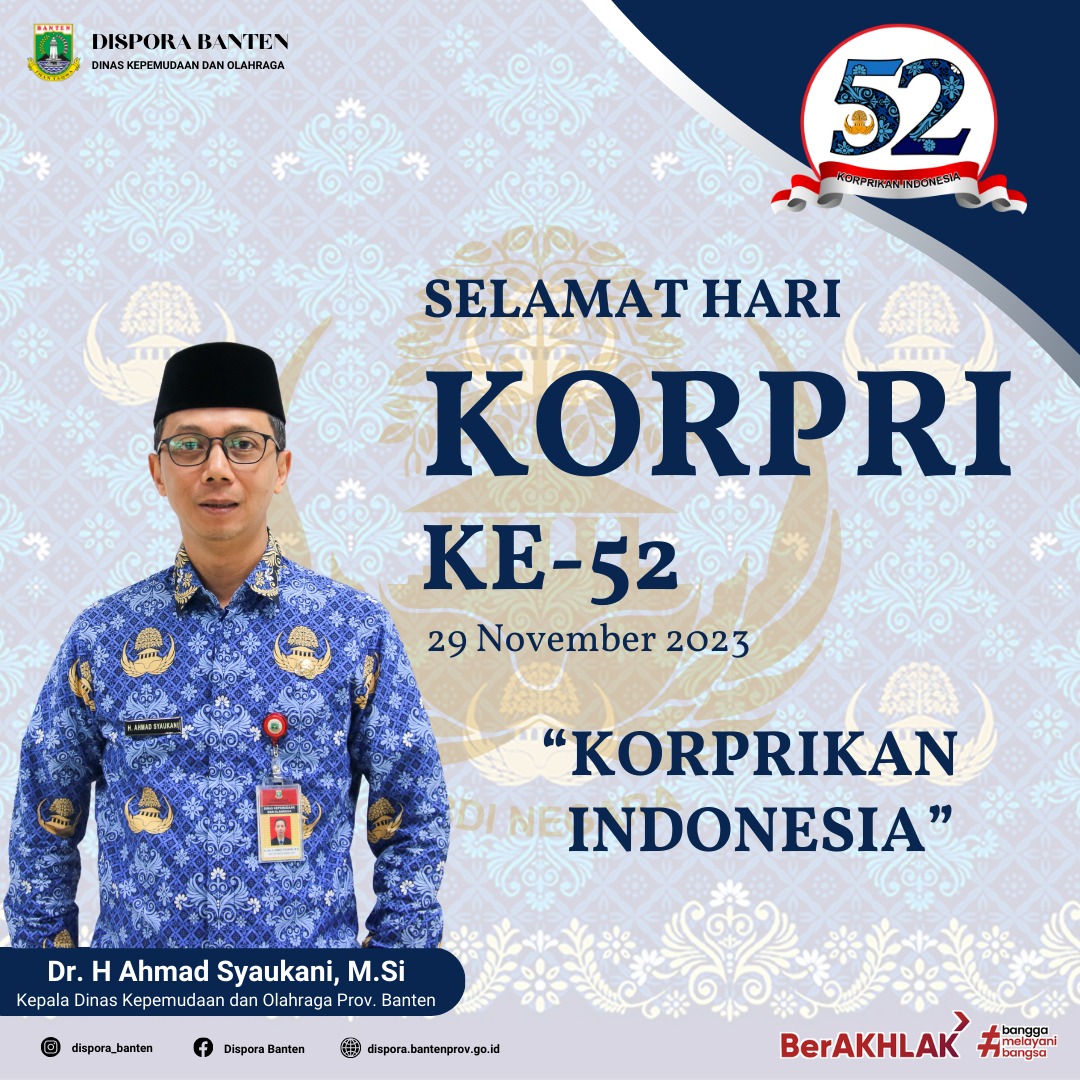29 Nov 2023 HUT KORPRI Ke 52 Oleh Lina Meliyani, A.Md. Sekretariat 0 View Selamat Hari KORPRI yang Ke 52 Korprikan Indonesia!!! Serang, (29/11/2023) Share this Post