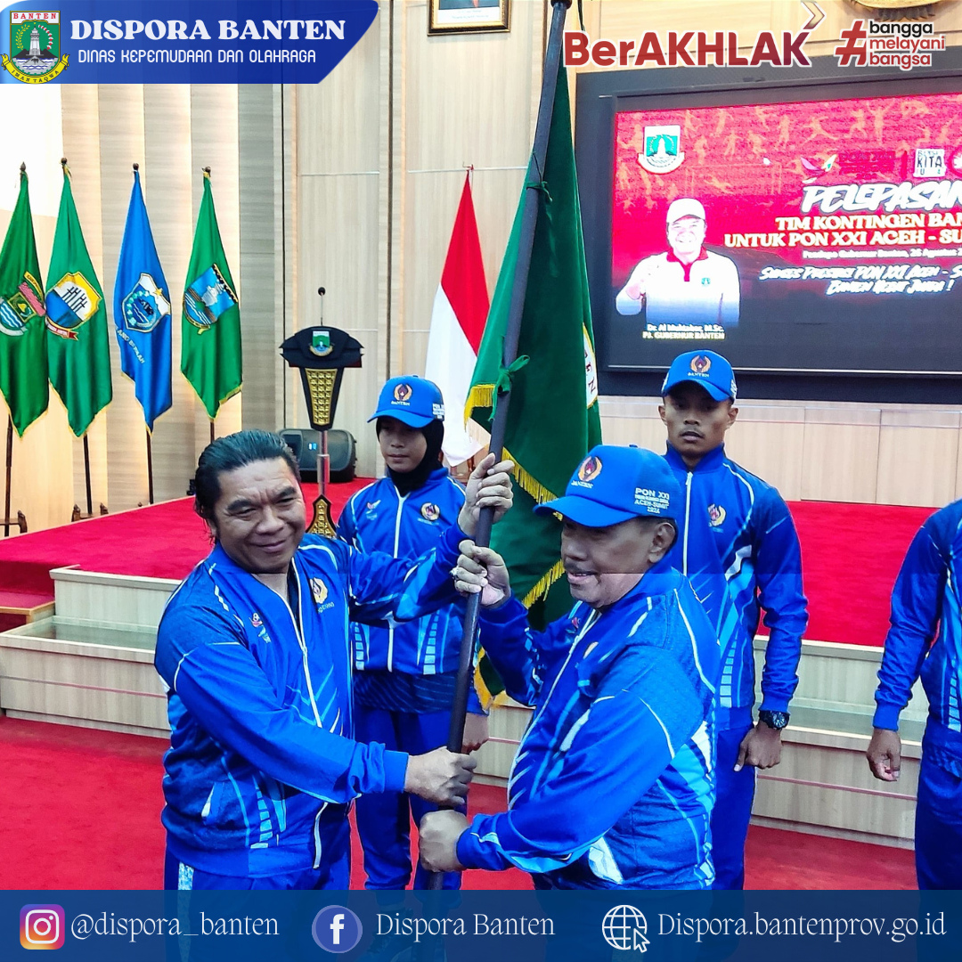 28 Aug 2024 PELEPASAN TIM KONTINGEN PROVINSI BANTEN PON XXI ACEH SUMATERA UTARA TAHUN 2024 Oleh Apriyatna Olahraga 0 View Pelepasan Tim Kontingen Provinsi Banten PON XXI Aceh Sumatera Utara Tahun 2024 bertempat di Pendopo Gubernur Banten oleh Pj Gubernur Banten. Serang, Senin (26/8/2024) Share this Post