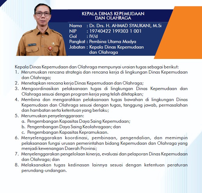 22 May 2025 PROFIL KEPALA DINAS KEPEMUDAAN DAN OLAHRAGA PROVINSI BANTEN Oleh Lina Meliyani, A.Md. 0 View Share this Post